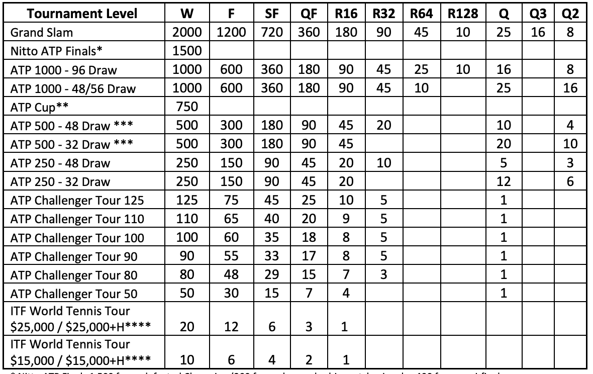 First, let’s dive into tennis ranking to set smart goals. The ATP is the governing body of the men's professional tennis - the ATP Tour and the ATP Challenger Tour. The ATP determines the rules for ATP tournaments and determines the points allocation for all men's professional events, including ITF World Tennis Tour Tournaments. A player's ranking is based on their best 18 tournaments, but players should read the rules on how the rankings are calculated in the ATP Tour Rulebook. Prior.