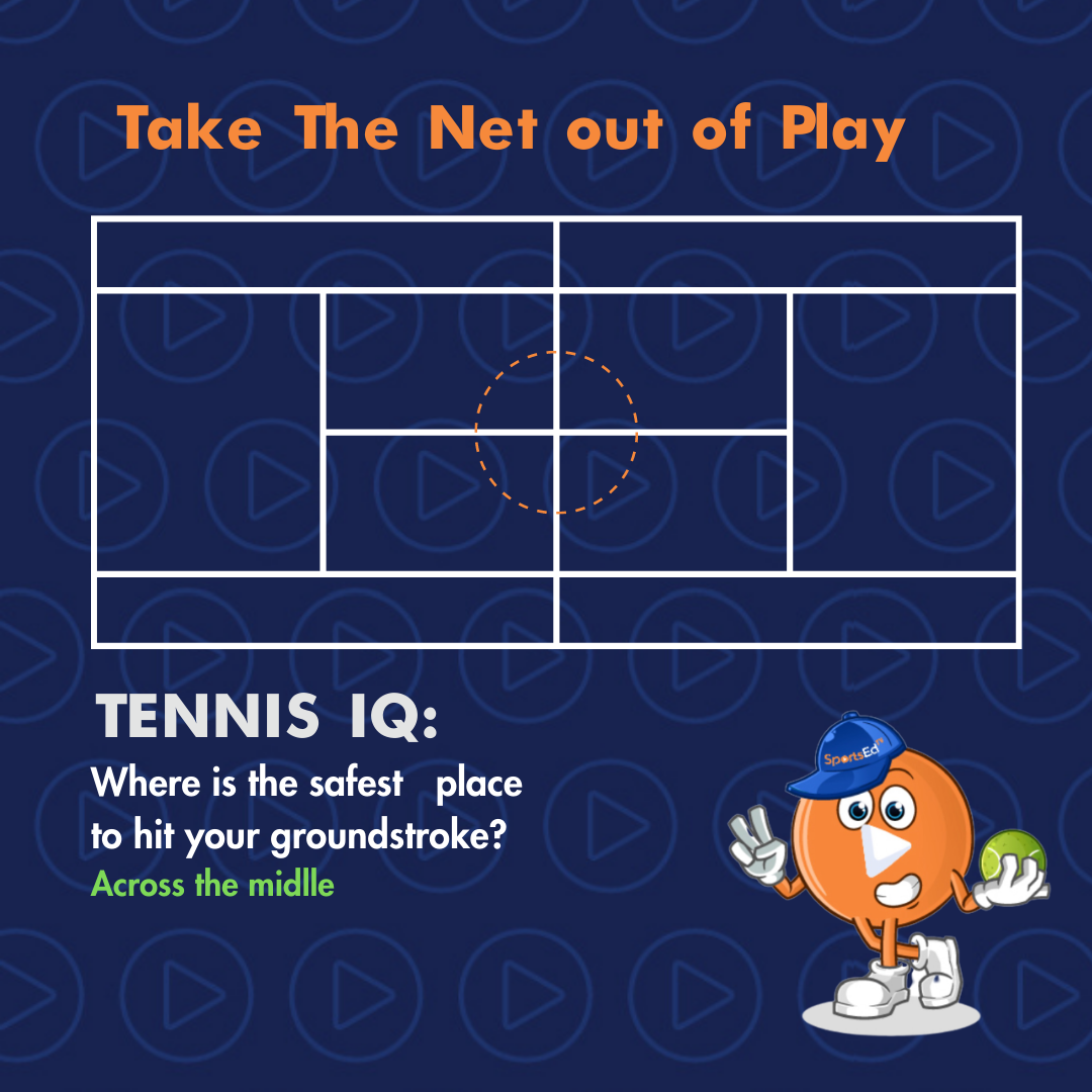 The net is higher on the sidelines than down the middle-so where is the easiest place to hit your forehand or backhand? If you answered across the middle of the net, you're right! That's because there is 6 more inches of clearance for your shot. "Never over, never in. Never in, Never Win" If you can take the net out of play, you are well on your way to increasing your Tennis strategy IQ.