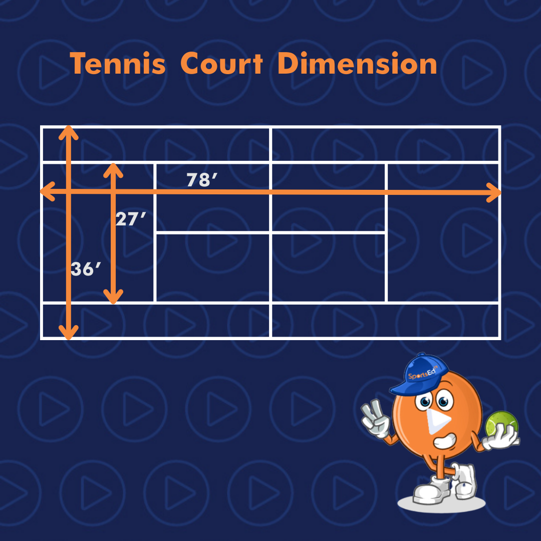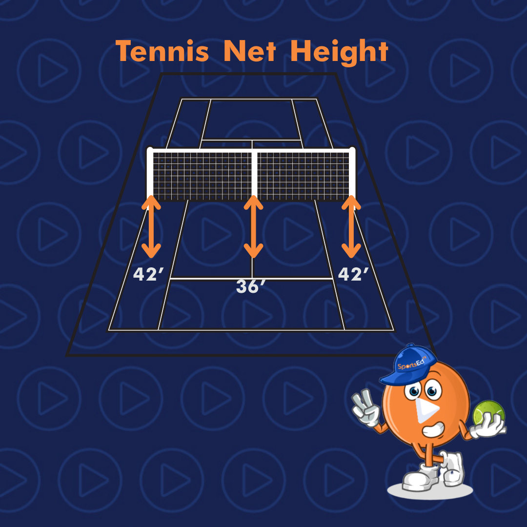 A tennis court is a rectangle that is 78 feet long and 36 feet wide ( for singles play, the court is 27 feet wide). The net is 36 inches high in the middle and is 42 inches high at the net posts. Now, why would I be sharing this information with you? Well, it's really quite simple. The geometry of the court provides us with some simple clues about high tennis percentages and will boost your tennis IQ immediately.