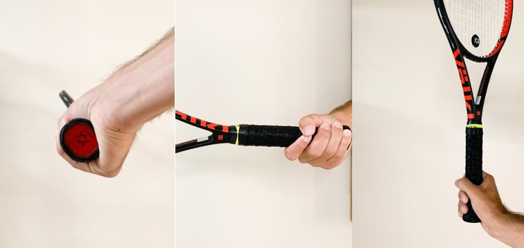 The grip selection that feels natural to you may differ from your tennis partners. For example, you probably hold your tennis racquet by using one of the six following grips: 1) continental, 2) eastern grip forehand, 3) semi-western, 4) western, or if you hit a double-handed forehand, you would use 5) and 6) submissive or dominant hand on top for double-handed forehands grips like Monica Seles and Marion Bartoli.