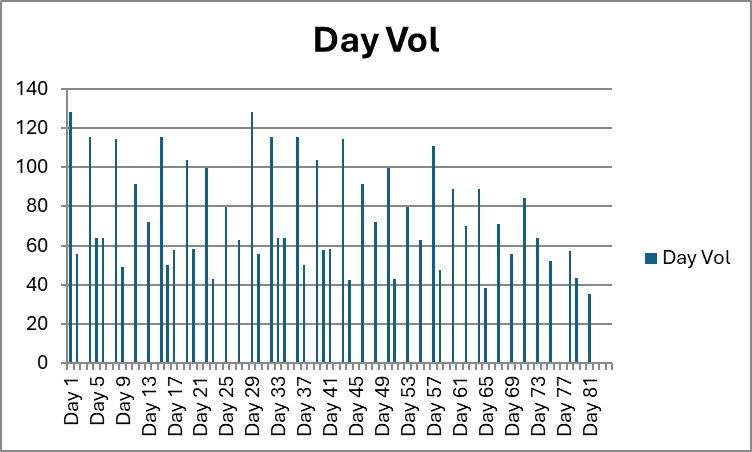 Total yearly volume: 11,000 to 13,000 repetitions