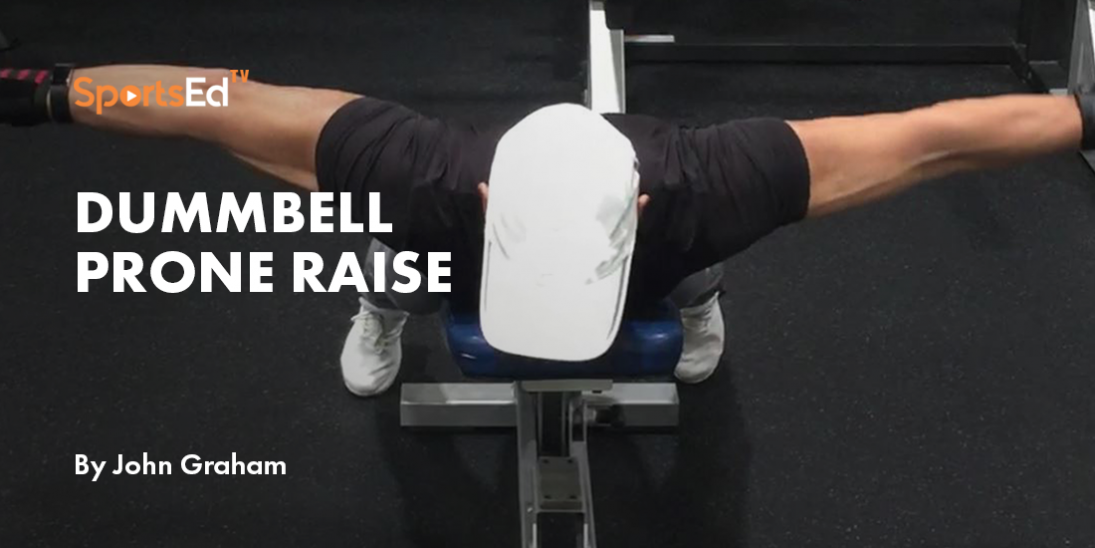 UPWARD MOVEMENT – Select two dumbbells of equal weight. Place the dumbbells on the floor next to the upper end of a slightly elevated adjustable bench. Lie prone on the bench with the hips, thighs and torso resting on the padded surface. Slide up the bench so that the chin rests over the top edge of the bench. Grasp the dumbbells with a closed grip and rotate them to a neutral hand position with the handles parallel to each other with the elbows pointing out to the side. The arms extend straight down from the shoulders with a slight flex in the elbows. Inhale and raise the dumbbells with control simultaneously out to the sides while maintaining the slight bend in the elbows; no movement should occur at the elbow joints, only at the shoulders. Throughout the upward motion, the upper arms and elbows should rise together. Avoid lifting the weight rapidly.