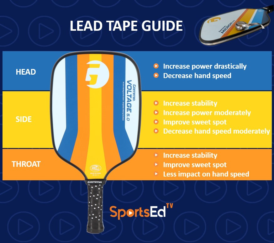 Lead tape added to pickleball paddles is becoming common, especially in the professional pickleball players' community. The advantage of heavy metal lead tape added to a paddle is that it can add weight, but strategically placed, it can create a larger sweet spot, resulting in fewer mishits and offering a bit more power when striking.