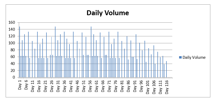| Week | Day | Week Volume | Daily % | Daily Volume |