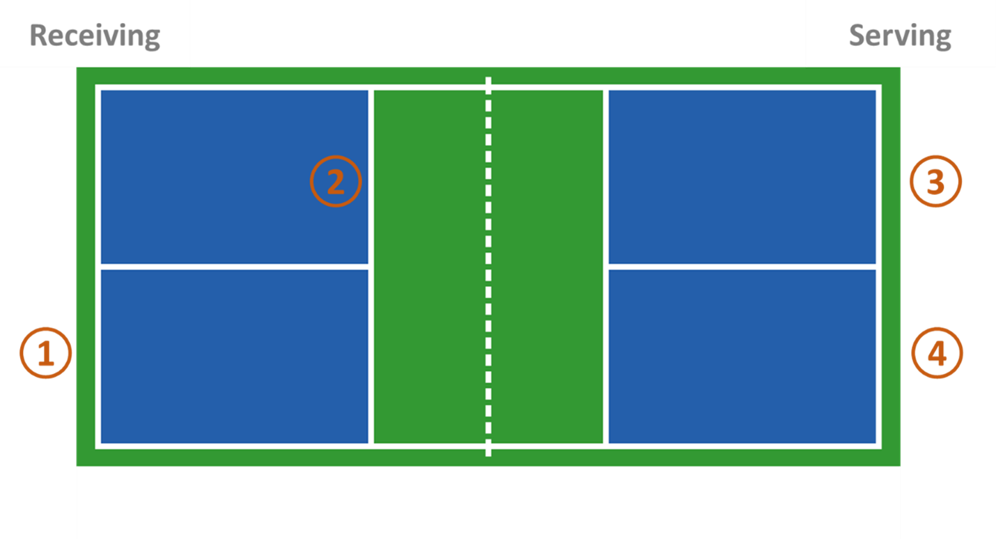 New pickleball players sometimes erroneously assume the players keep the same serving number throughout the game. The serving number goes to the player on the right when the fault-changing serve occurs.
