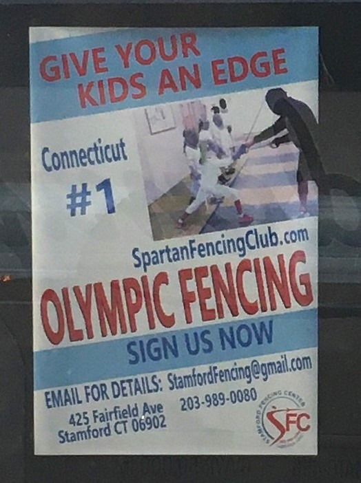 Buy a ticket or check any program book at any Olympic Games and nowhere does any sport have Olympic as part of its name. It’s not Olympic diving, or Olympic gymnastics, or Olympic fencing. Fencing? That brings to mind a quick photo I took in Connecticut during the Tokyo Games. I got a chuckle out of this sign in the window of a local fencing center.