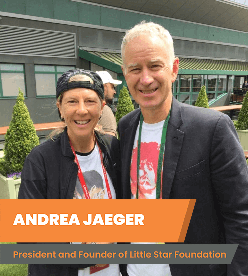 In addition to Andrea’s numerous wins over Billie Jean King, Chris Evert and other notable tennis champions, her leadership role at Little Star Foundation working with global CEO’s, NGO’s and industry pioneers is equally impressive. Andrea is the recipient of the Mercedes Award for Excellence, Jackie Robinson Humanitarian Award, The Jefferson Award held in the U.S. Supreme Court Chambers, National Pathfinder Award and a member of the World Sport Humanitarian Hall of Fame.