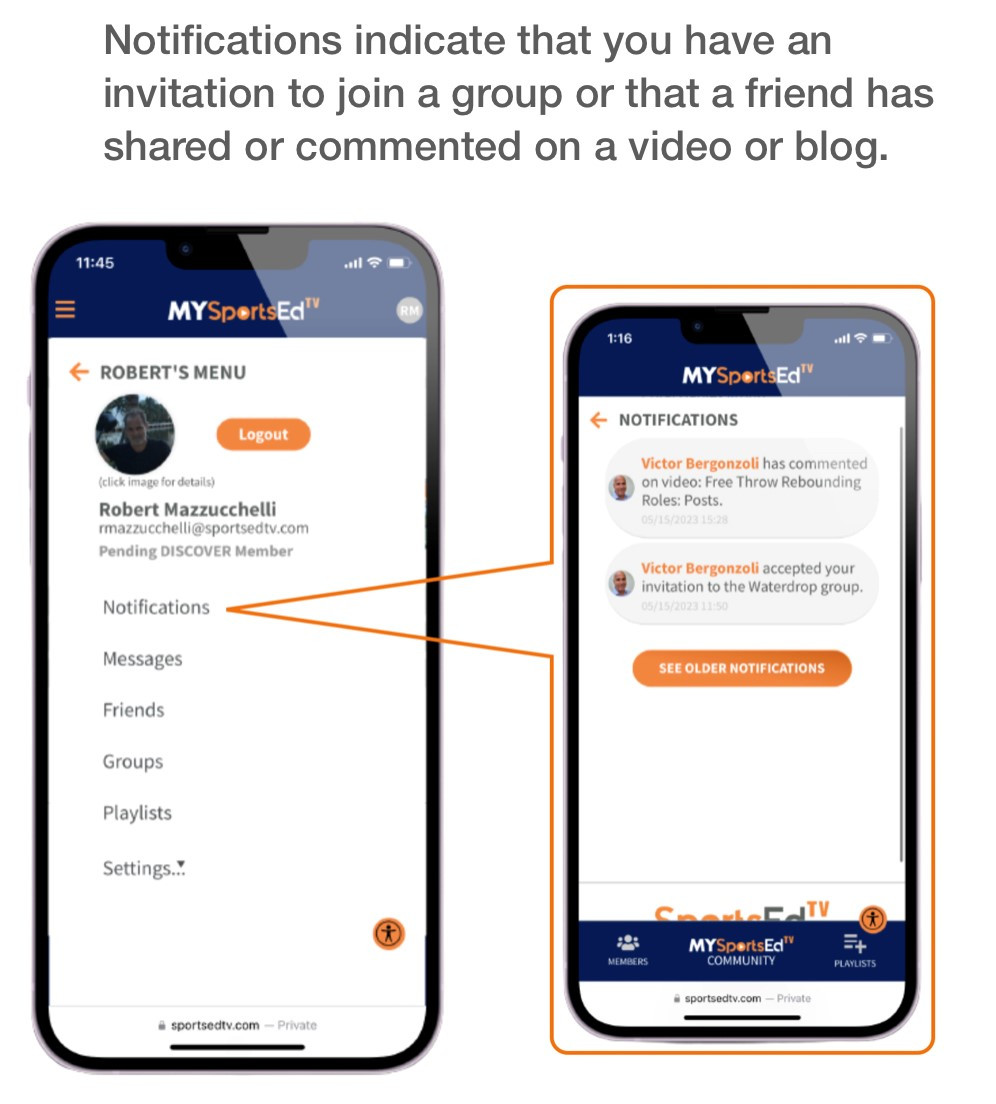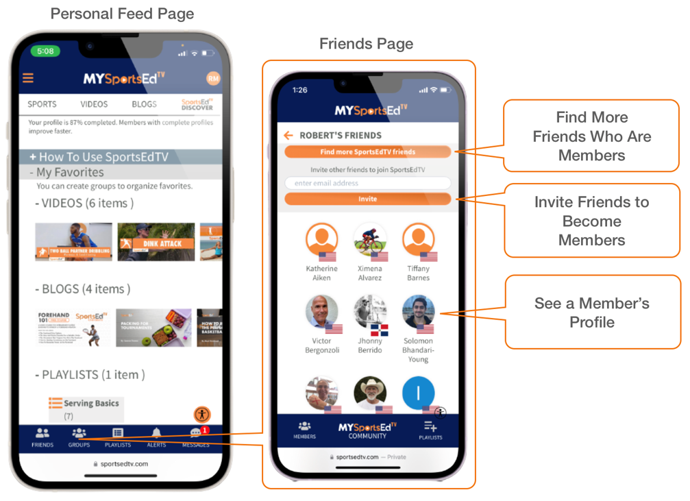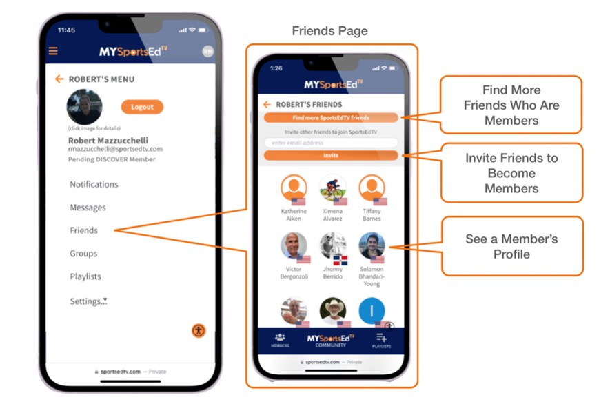 You can also invite friends (who are not already members) to join SportsEdTV by sending them an email invitation (see below, bottom right).