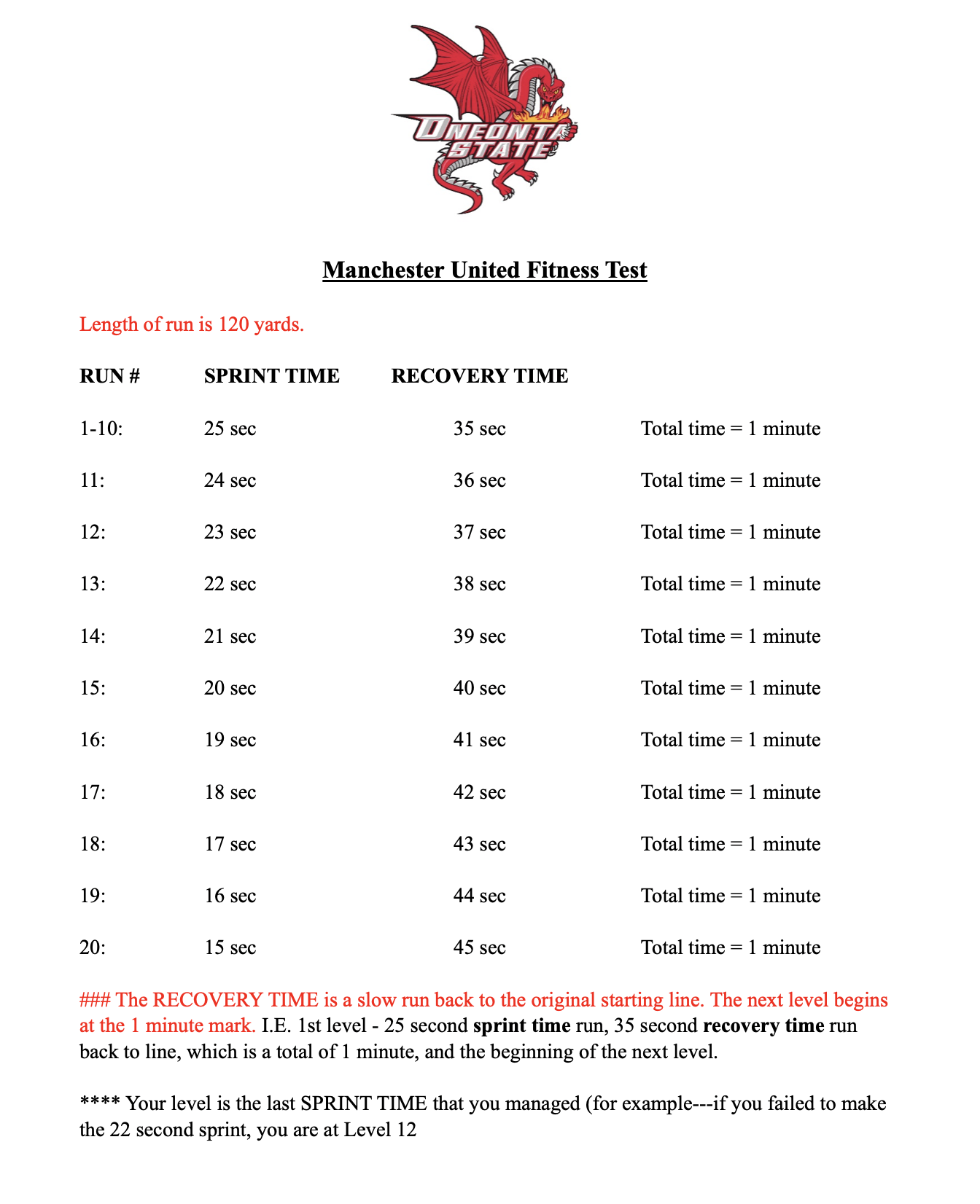 The Manchester United fitness test, so players can evaluate themselves during the summer