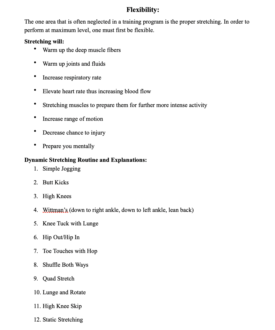This summer workout program is designed to prepare the players for the fitness tests that will be conducted during that first week of preseason - tests that the players dread by the way!